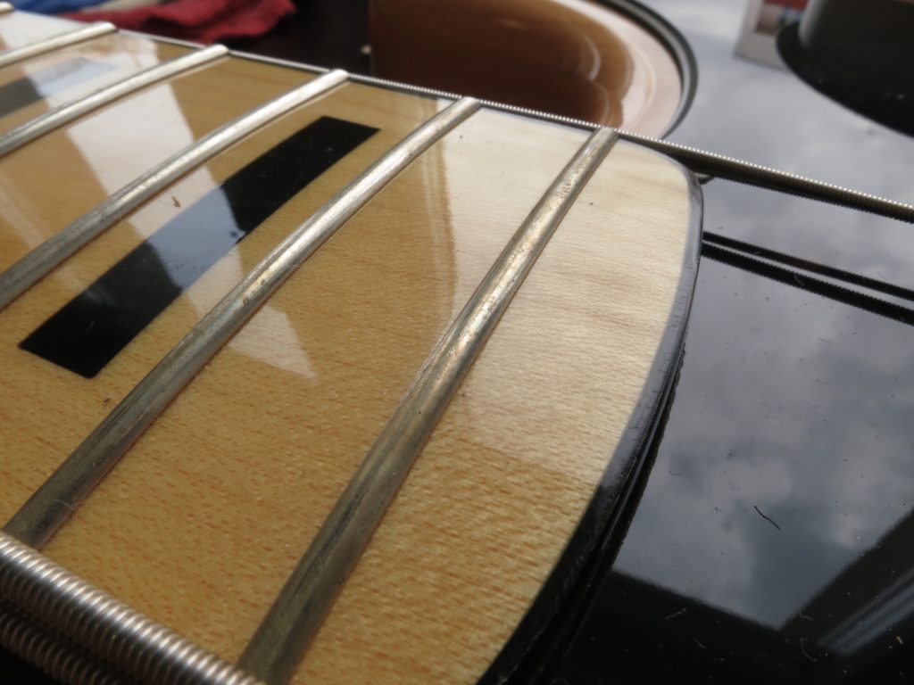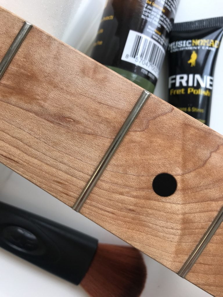 Jeśli macie podstrunnicę z klonu to są 2 opcje: jeśłi podstrunnica jest lakierowana możecie używać zwykłego płynu do mebli 🙂 jeśli zaś jest woskowana to wracamy do zasady numer 1 – myć łapy! A jak już będzie mocno brudno to niestety przy nielakierowanym klonie pozostaje szlifowanie…