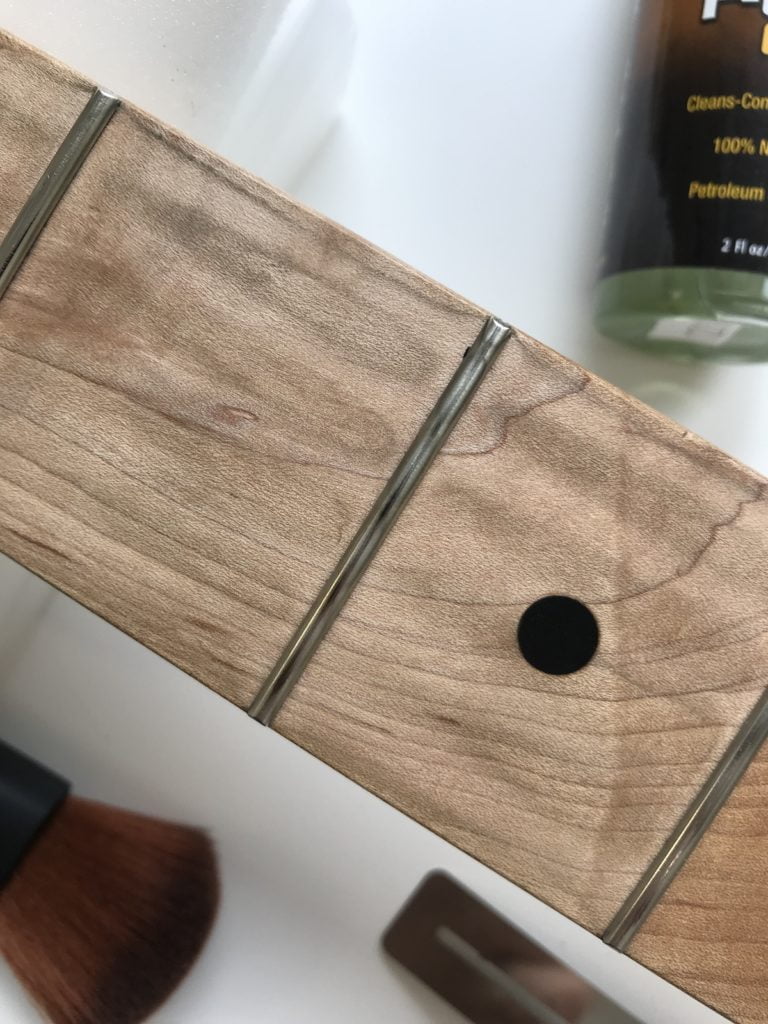 Ja mam podstunnicę klonową i czyszczę ją używając oliwki bambino … głównie chodzi o delikatny dla drewna skład oliwki… Przecieram podstrunnicę miękkim papierem nasączonym oliwką bambino do usunięcia zanieczyszczeń z powierzchni i delikatnie wycieram podstrunnicę suchym papierem i pozwalam drewnu wchłonąć pozostałości oliwki w celu jej konserwacji … Proste i tanie a najważniejsze że skuteczne !!!