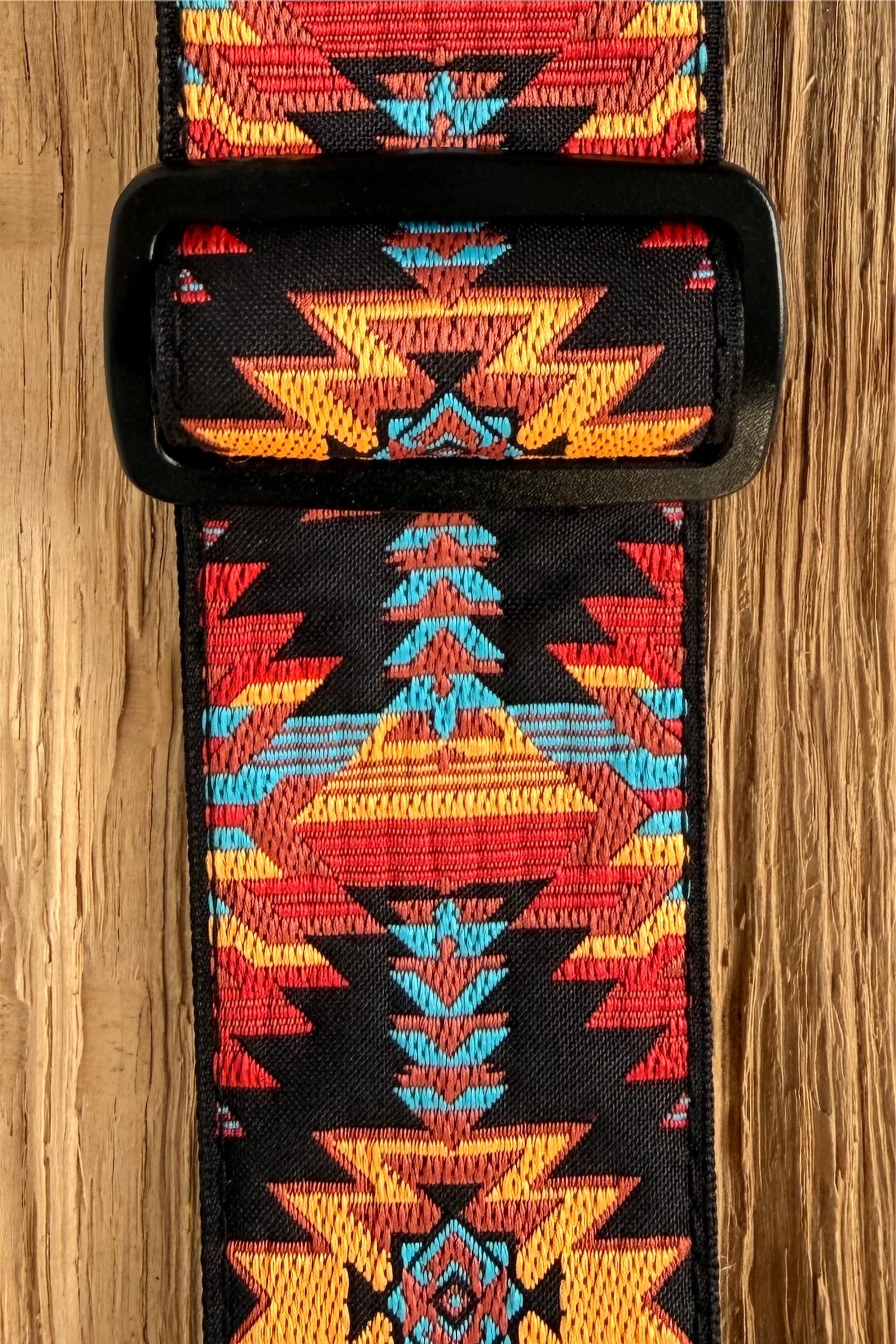 Pasek “Albuquerque Sunset” to wielokolorowy pasek z geometrycznym wzorem. Paleta kolorów to kolory natury stanu New Mexico – od brązu, przez czerwień po miodowy. Do tego kontrastowa odrobina błękitu.