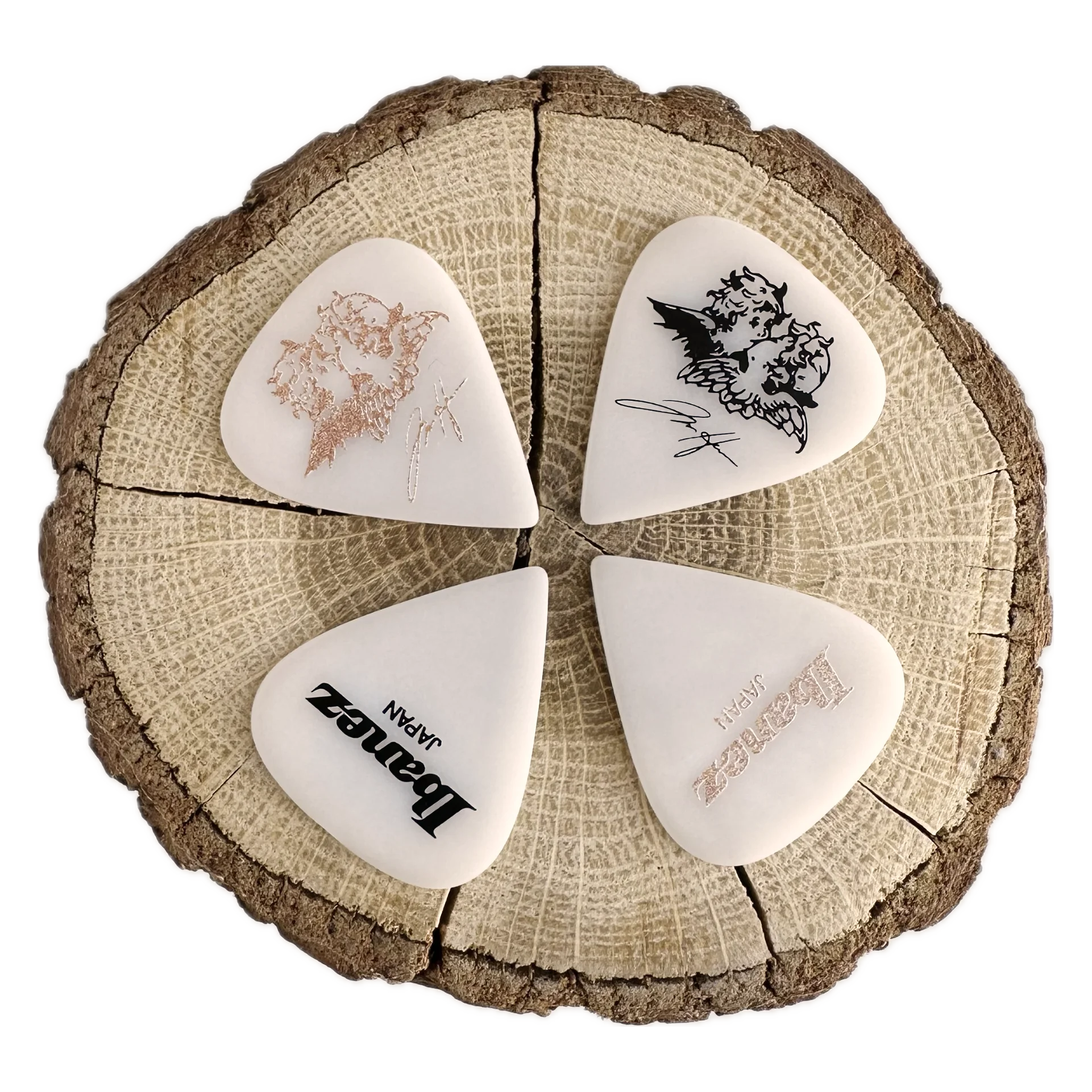 Kostka z jednej strony ma logo Ibaneza, z drugiej logo w6rst i podpis gitarzysty.