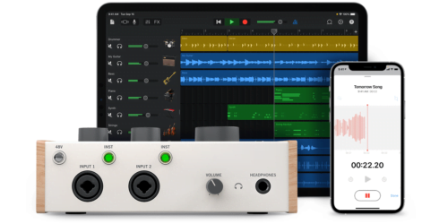 Interfejsy mogą być zasilane bezpośrednio z gniazda USB/lightning, można je także dodatkowo zasilić z osobnego źródła. Ta druga opcja może okazać się przydatna np. kiedy podłączamy interfejs do iPada czy iPhone’a, ale nie chcemy drenować baterii. Właśnie, interfejsy Volt współpracują nie tylko z komputerami (Mac/PC), ale także z urządzeniami z systemem iOS/iPadOS. Bez problemu nagramy coś nawet z dala od cywilizacji – telefon, interfejs, gitara czy mikrofon i można nagrywać choćby w środku lasu.